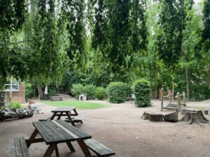Unser sehr schönes und weiträumiges Außengelände eröffnet variierende Spielmöglichkeiten. Die naturnahe Gestaltung bietet den Kindern viel Raum zum Erleben und Erfahren der Natur. In unmittelbarer Nähe befindet sich ein Waldgebiet und angrenzend an das Außengelände verläuft die Rahlau
